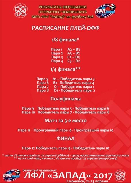 Матчи плей-офф с 1/4 финала будут сыграны 23 апреля (воскресенье)