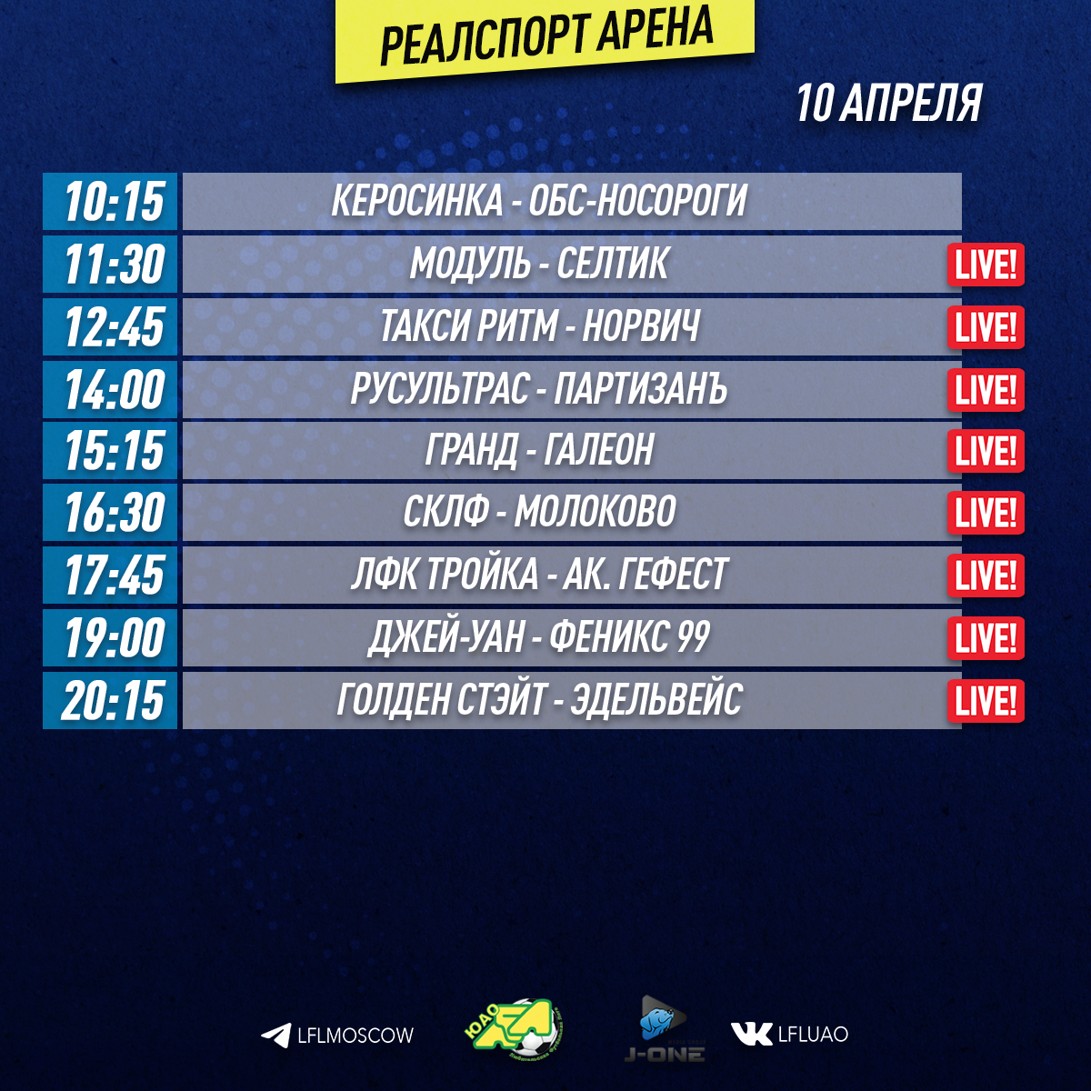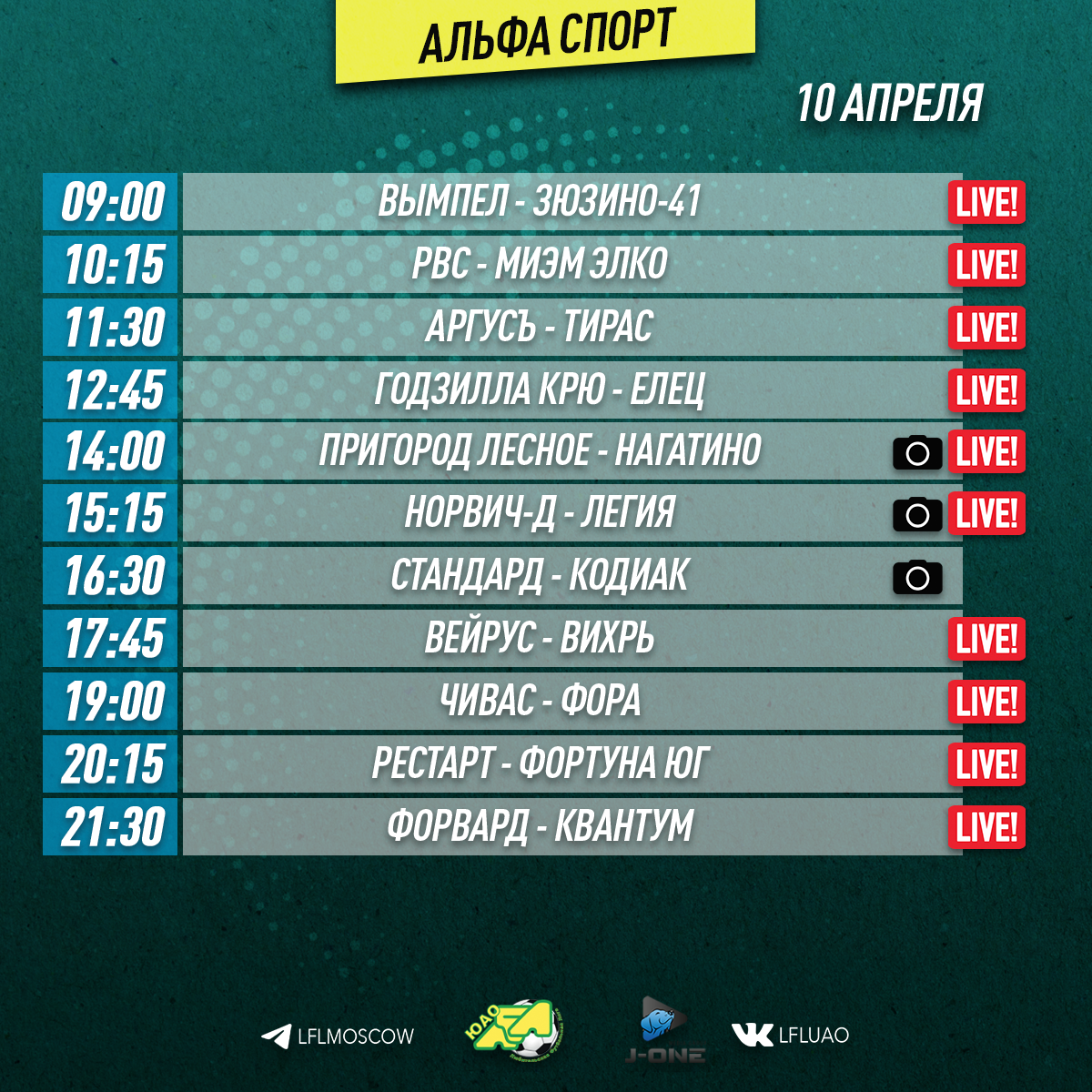 Медиа13.04.2022 «Полоса черная. Полоса белая» - Обзор 3-его тура Еврокубков. Нестабильно пока наши клубы играют в Еврокубках. Ну, за исключением Титана. В прошлом туре хозяева забивали и не пропускали, а в этом, наоборот, только пропускали и не забивали. Это все Лига Чемпионов, где Барс и Транс Синергия синхронно уступили свои встречи. Одержал домашнюю победу, зато, Феникс 9 в Кубке ЛФЛ. А вот выезд оказался неудачным. Более подробно читайте наш обзор с экспертом, экс-руководителем Мегатитана, Игорем Кротковым. Подробнее11.04.2022 CFL 2022. «Главная задача на CFL – забить гол» - Денис Лопатьев (МФЛ Курск). Руководитель Курской Лиги и Черноземья сейчас весь в делах. Поймать даже на несколько минут проблематично. Игры, начало чемпионата, подготовка к CFL. Но, после первого тура своей команды все же нашёл немного времени и ответил на вопросы журналистов. Ну и конечно, мы не могли не поговорить с легендарной личностью ЛФЛ – Русланом Сафаровым. Подробнее09.04.2022 «А за окном то дождь, то снег» - Запад. Первый дивизион. Превью 6-го тура. Погода всегда является важным фактором и вносит коррективы в подготовку к игре. Какие бутсы выбрать, шиповки или «сороконожки»? Какую тактику использовать? Все это зависит от погодных условий и, соответственно, от состояния газона. Но уже вторую неделю «небесная канцелярия» устраивает нам настоящие испытания на прочность. Две недели назад отдельные матчи оказались чуть ли не под угрозой срыва из-за ветра, близкого к ураганному. А в минувшие выходные поля завалило таким количеством снега, что для раскопок газонов пришлось часть игр отменять. Подробнее08.04.2022 Ранним субботним утром стартует очередной футбольный уик-энд во всех дивизионах Южной Лиги. Команды начинают постепенное погружение, вступая в активную стадию нового сезона! Подробнее08.04.2022 «Экватор Еврокубков» (превью 3-его тура Лиги Чемпионов и Кубка ЛФЛ) Как известно, третий и четвёртый туры Еврокубков ЛФЛ играются «шиворот-навыворот». С тем же самым соперником проводятся матч дома и игра в гостях, и, как правило, именно эти игры определяют дальнейшую судьбу участника межокружных «заруб», - куда он отправится: в плэй-офф или «с ярмарки». С той, правда, оговоркой, что третьи места в группах ЛЧ автоматом попадают в 1/8 Кубка ЛФЛ и чаще всего входят в перечень дальнейших фаворитов малого кубка. Подробнее08.04.2022 Поставить бы сюрпризы на поток! Запад, Второй дивизион. Превью 6-го тура Прошлая неделя принесла нам сюрпризы как игровые, так и погодные. Есть предпосылки к тому, что и на этот раз будет кое-что интересное. К счастью, только с футбольной точки зрения. Подробнее08.04.2022 5 месяц зимы на футбольных полях (Обзор 5-го тура 2-го дивизиона «А») И снова здравствуйте, дорогие читатели! С Вами “Эфир на Юго-Западе”! Обзор матчей 2А Дивизиона ЛФЛ ЮЗАО! 5 тур нам преподнёс интересные противостояния между командами первой пятёрки. Данный уик-енд, являлся самым заснеженным в этом весеннем сезоне. Будем надеяться, что солнце будет чаще нас радовать на “Вернадке-Парк”. А пока мы ждём потепления и согреваемся горячим чаем! Что же скрывалось в 5 туре, узнаем прямо сейчас! Мы начинаем! Подробнее07.04.2022 Расписание медиа Южной лиги ЛФЛ Представляем вашему вниманию расписание медиа Южной лиги ЛФЛ на предстоящий футбольный уик-энд Подробнее07.04.2022 КФЛ-2022. Александр Манелов, «Аполлония»: «Переезжайте к нам в Вы